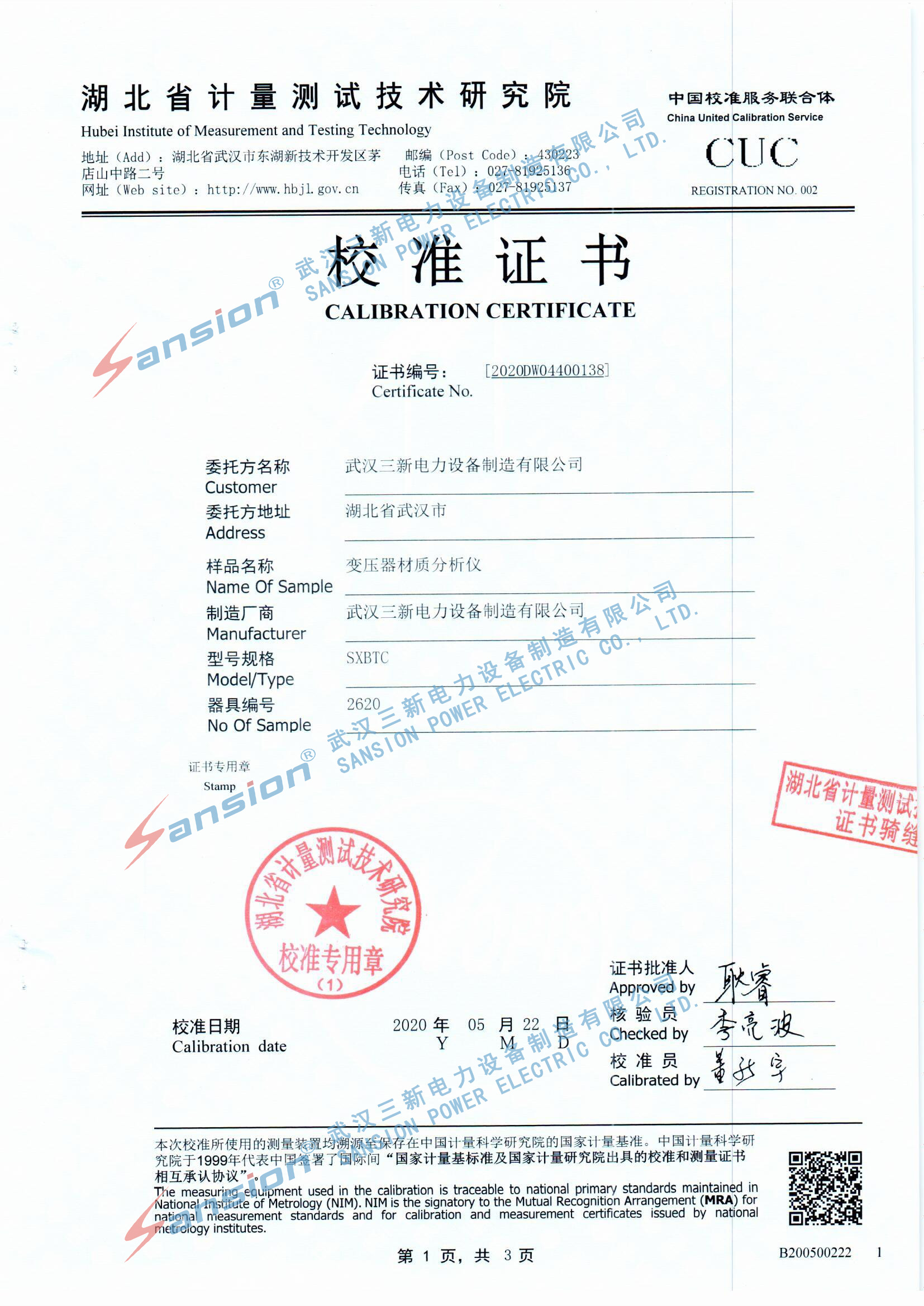 说明:您还可以通过下面的下载链接下载本校验证书,其格式为PDF。如不能下载或者下载过程有遇到什么问题,请联系我们,电话:027-8462 4498,或者QQ:2851566122。