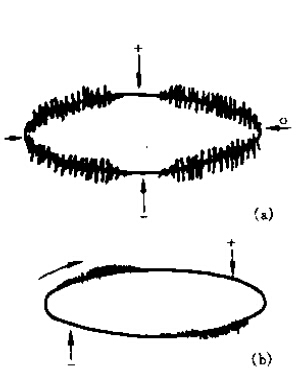 同一介质中不同大小的气泡也可能形成这种圆形,主要出理于环氧浇铸绝缘中;放电量随电压变化,如在电容器层间气隙则放电量随加压时间变化。
