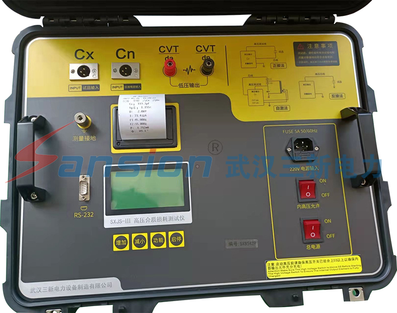 SXJS-III型高压介质损耗测试仪用于现场抗干扰介损测量,或试验室精密介损测量。仪器为一体化结构,内置介损电桥、变频电源、试验变压器和标准电容器等。采用变频抗干扰和傅立叶变换数字滤波技术,全自动智能化测量,强干扰下测量数据非常稳定。测量结果由大屏幕液晶显示,自带微型打印机可打印输出。