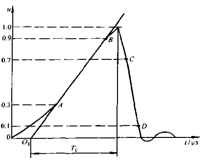 如图2和图3所示。表1列出了雷电冲击电压标准波形参数和容许偏差( CB/T 16927 1-1997)。