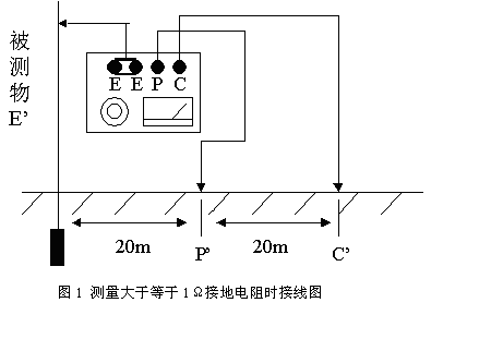 1.1测量大于等于1Ω接地电阻时接线图见图1 将仪表上2个E端钮连结在一起。