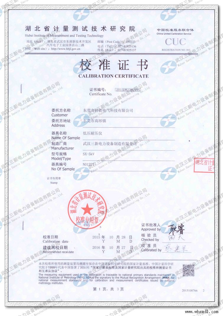 20151028-SX-5KV低压耐压仪校准证书-低压耐压仪校准证书-1 20151028-SX-5KV低压耐压仪校准证书-低压耐压仪校准证书-2 20151028-SX-5KV低压耐压仪校准证书-低压耐压仪校准证书-3