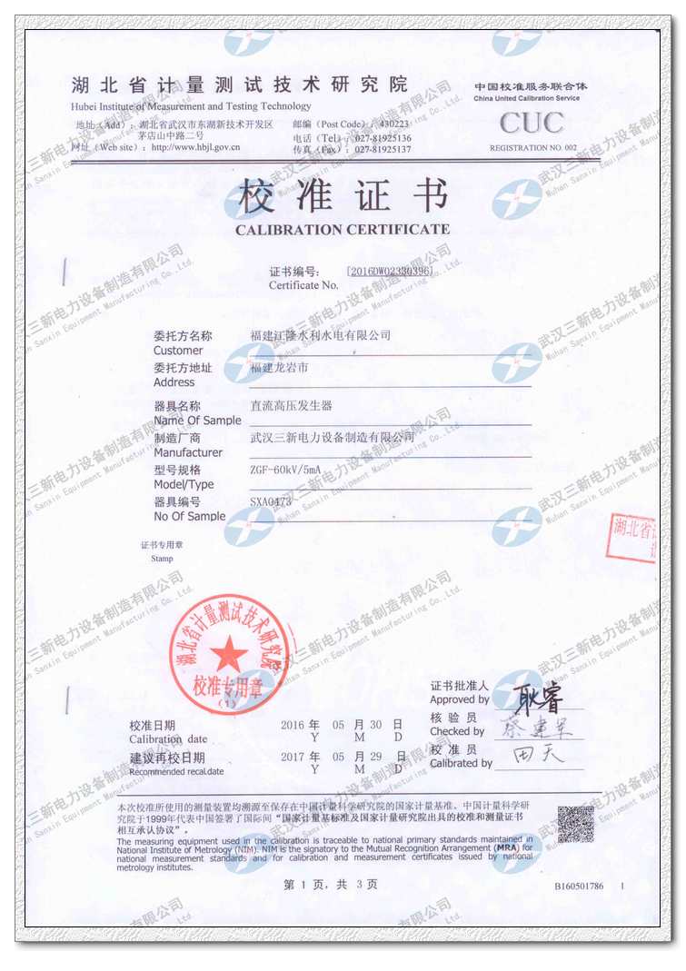 20160530-ZGF-60KV/5mA直流高压发生器校准证书- 20160530-ZGF-60KV/5mA直流高压发生器校准证书- 20160530-ZGF-60KV/5mA直流高压发生器校准证书-