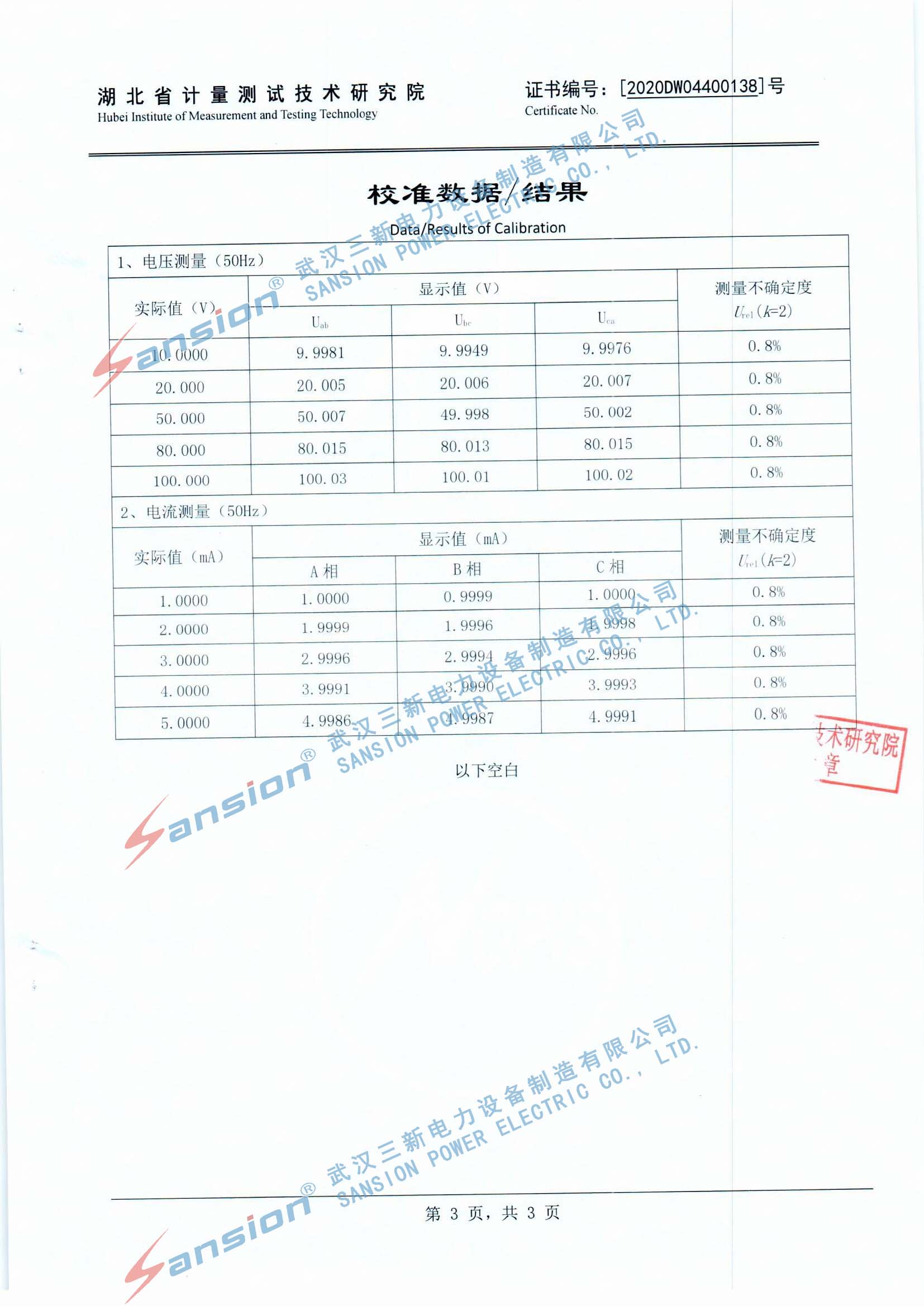 检测单位:湖北省计量测试技术研究院